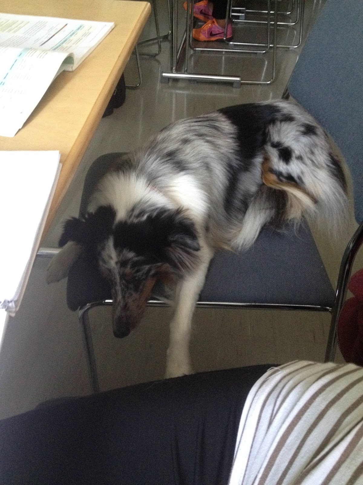 Pieni koira oli aluksi yksi kurssin ahkerimmista ja innokkaimmista opiskelijoista, mutta heti kun tehtävien teko alkoi, pieni koira väsähti ja nukahti pulpettiin. No, antakaamme se anteeksi, niin käy helposti itse kullekin.